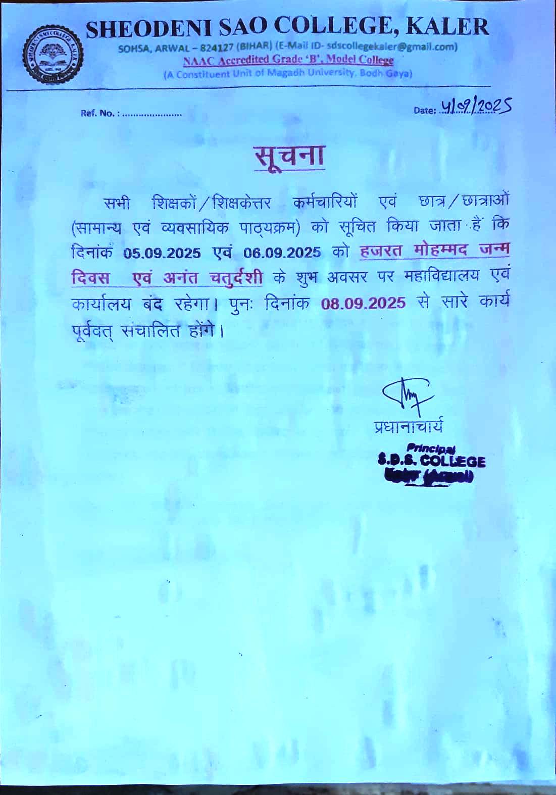 sdscollegekaler@gmail.com