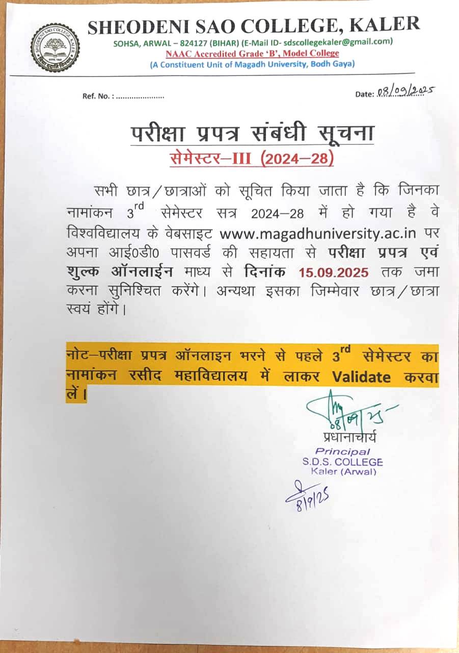 News & Updates >> SEM-III EXAM FORM NOTICE 2024-28