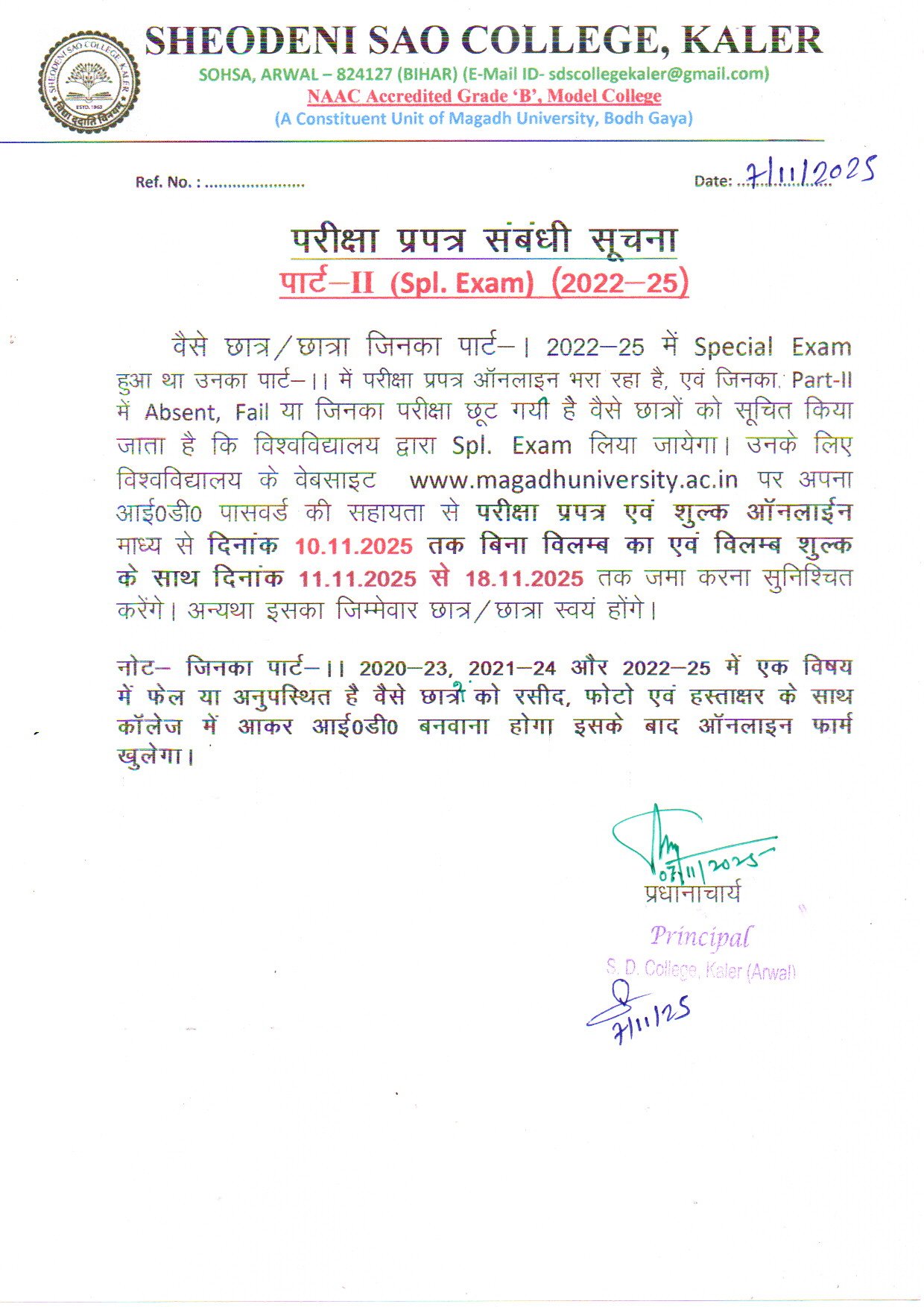 Part-II Exam form Notice 2022-25