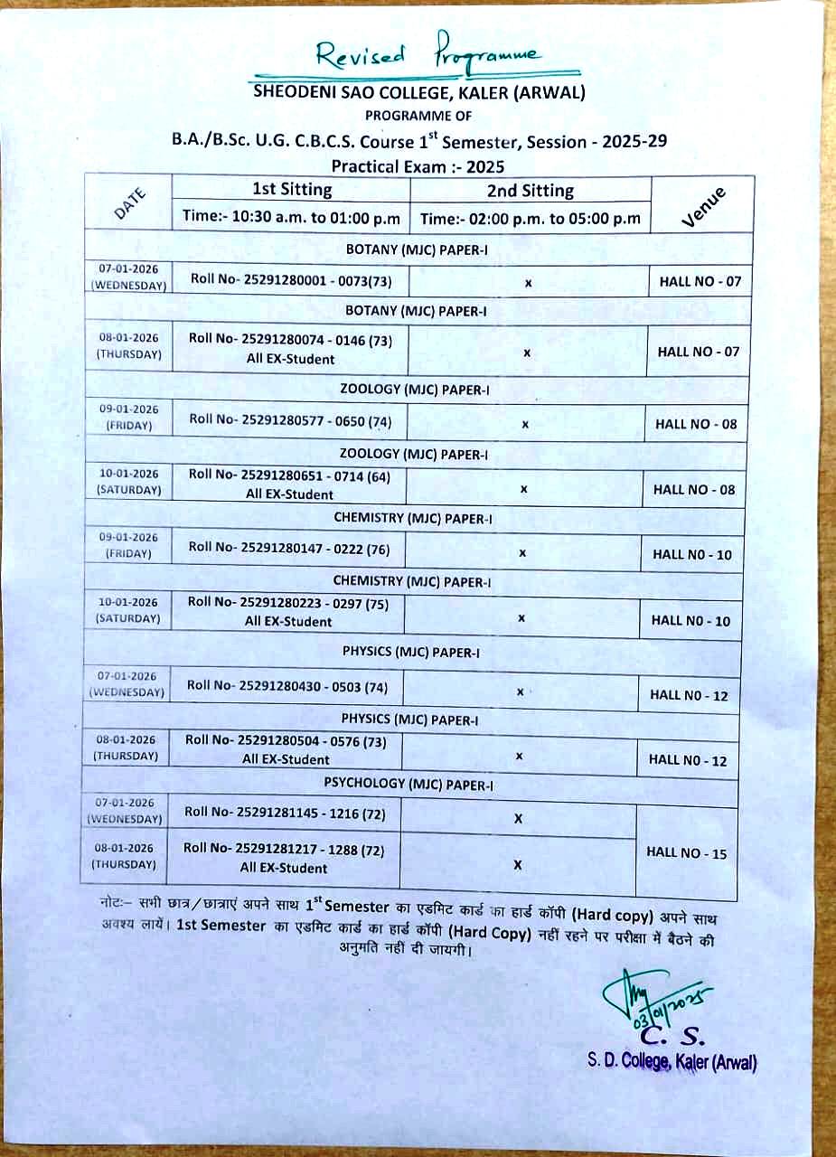 News & Updates >> REVISED PRACTICAL PROGRAM 1ST SEM. 2025-29