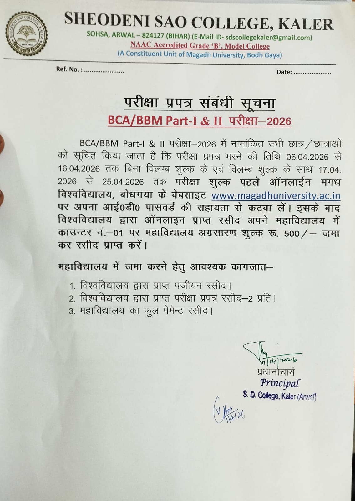 News & Updates >> BCA PART-I & II EXAM FORM NOTICE 2026