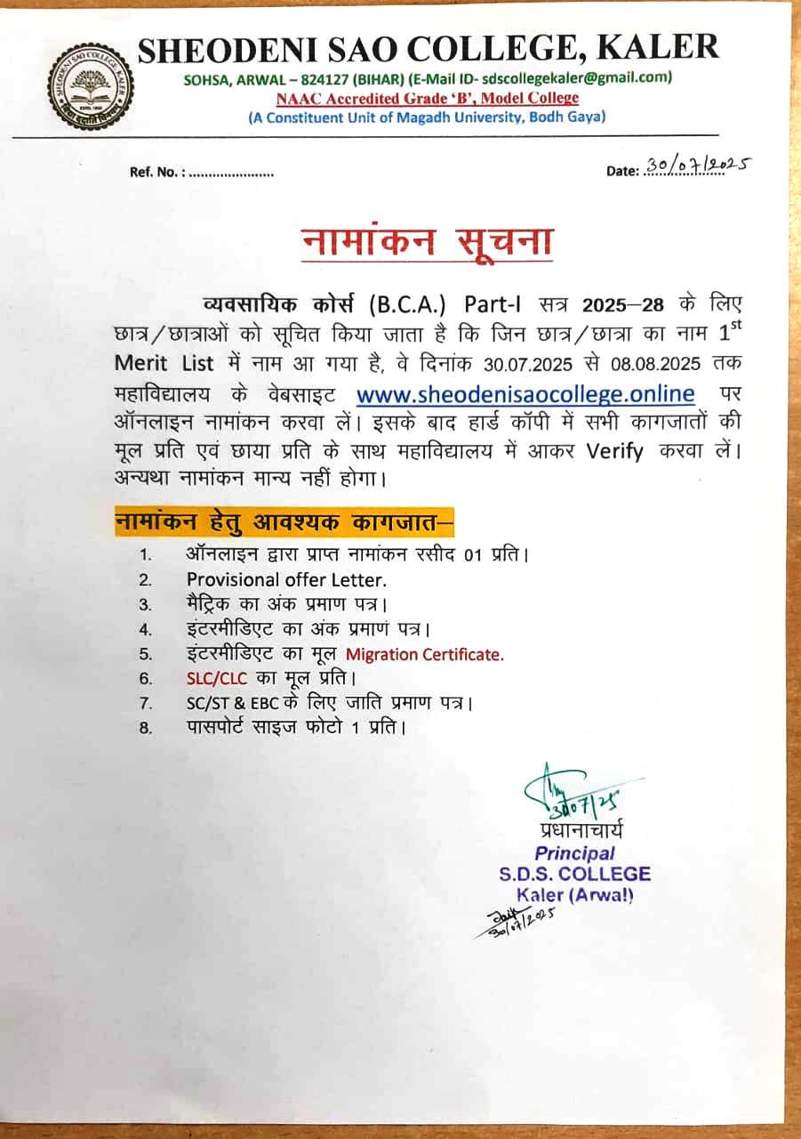 >> BCA ADMISSION NOTICE 2025-28