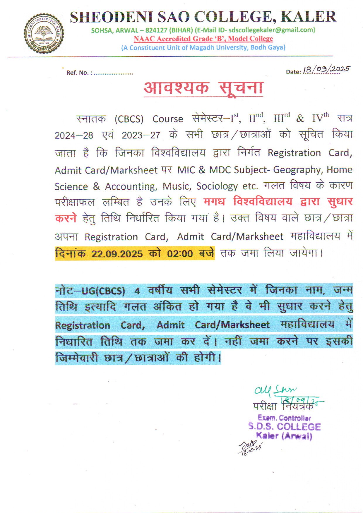 News & Updates >> CORRECTION NOTICE FOR UG COURSES