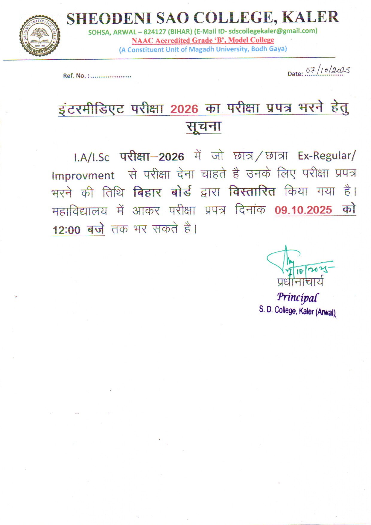 News & Updates >> IA/ISC EXAM FORM NOTICE 07-10-25 2ND