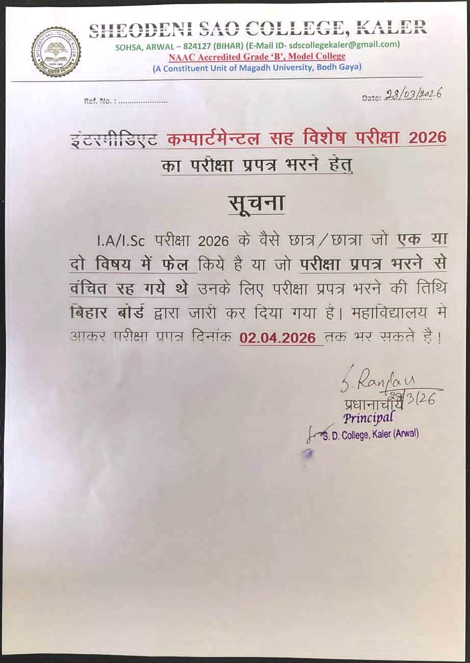 News & Updates >> INTERMEDIATE COMPARTMENTAL/ EX-REGULAR EXAM FORM