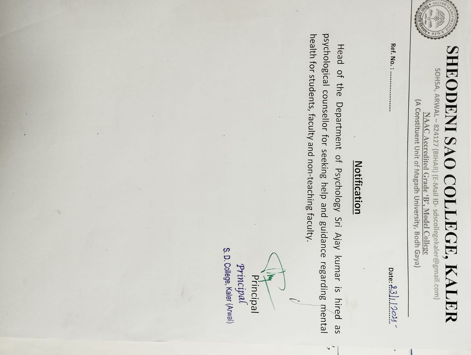 Notice for Psychological Counseling Services